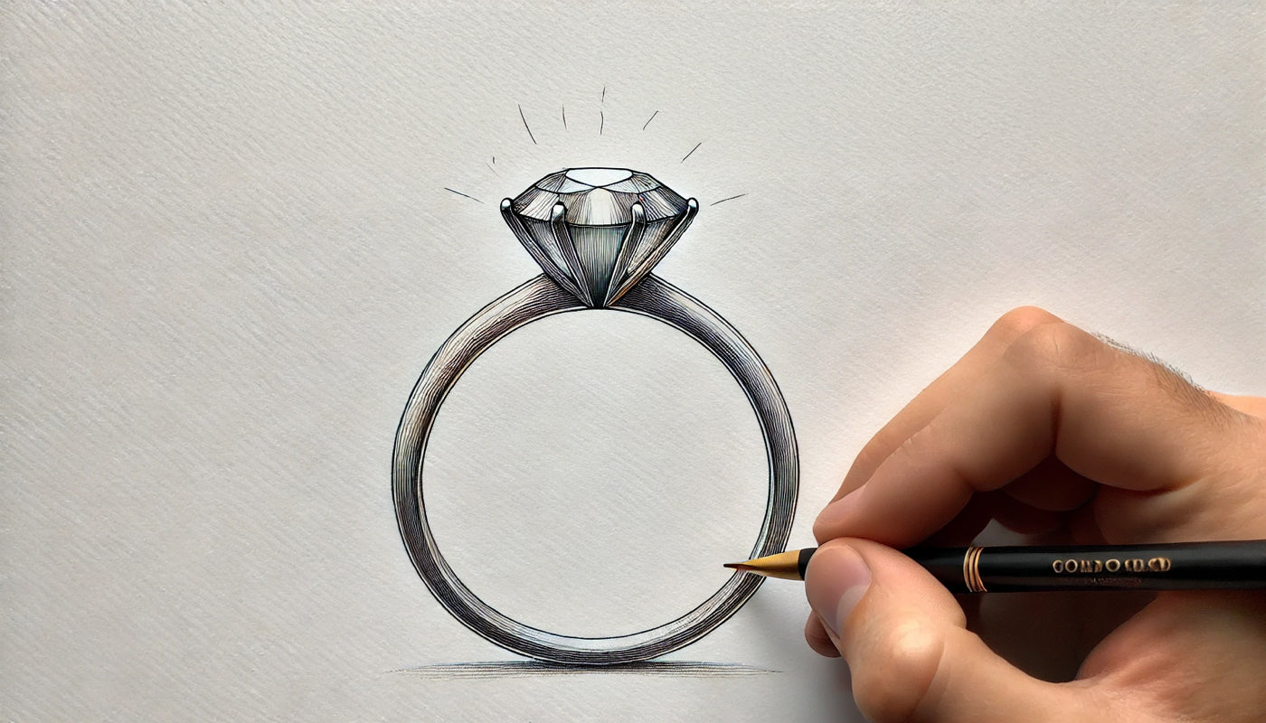 In questa fase immagiamo insieme la montatura e scegliamo la pietra. Il progetto prende forma su carta, a mano libera, come si faceva una volta.